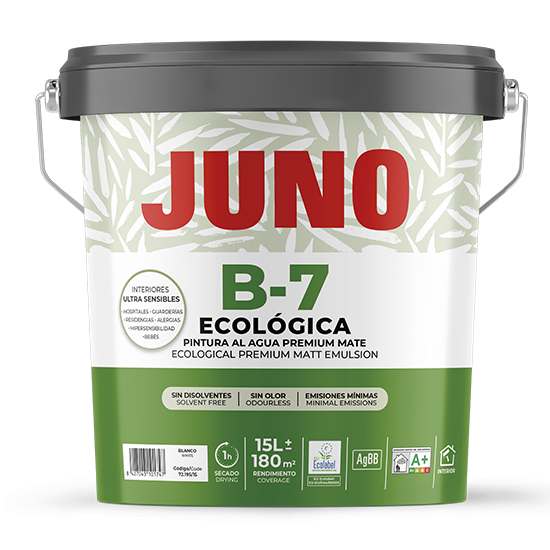 Ideal for decorating walls and ceilings where a quality matt silky smooth finish is required. Recommended form decorating hospitals, nurseries, baby rooms or spaces for hypersensitive people, thanks to its zero emissions of volatile organic components. Permits immediate use of spaces after application. B-7 is highly wet-rub resistant.